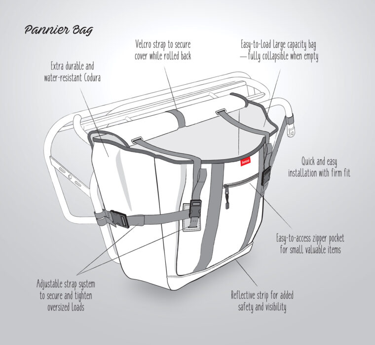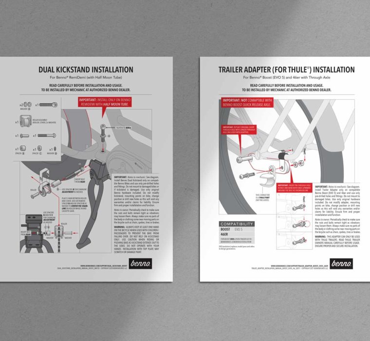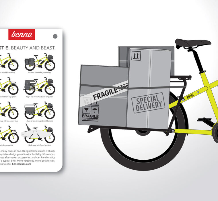 In order to reflect the brand’s uniqueness, emago media has developed an illustrative language for the Benno Bikes brand that highlights the outstanding functionality and versatility of these utility bikes. Through a diverse array of illustrations, we portray the immense cargo-carrying capacity of these bikes, capable of accommodating anything from seats and grocery bags to all the essential gear for a beach outing or a memorable camping expedition. Recognizing the occasional need for assembly when it comes to Benno Bikes and their accompanying accessories, emago media has produced intricate technical illustrations for all documentation and installation manuals, ensuring a seamless and hassle-free experience for Benno Bikes customers.